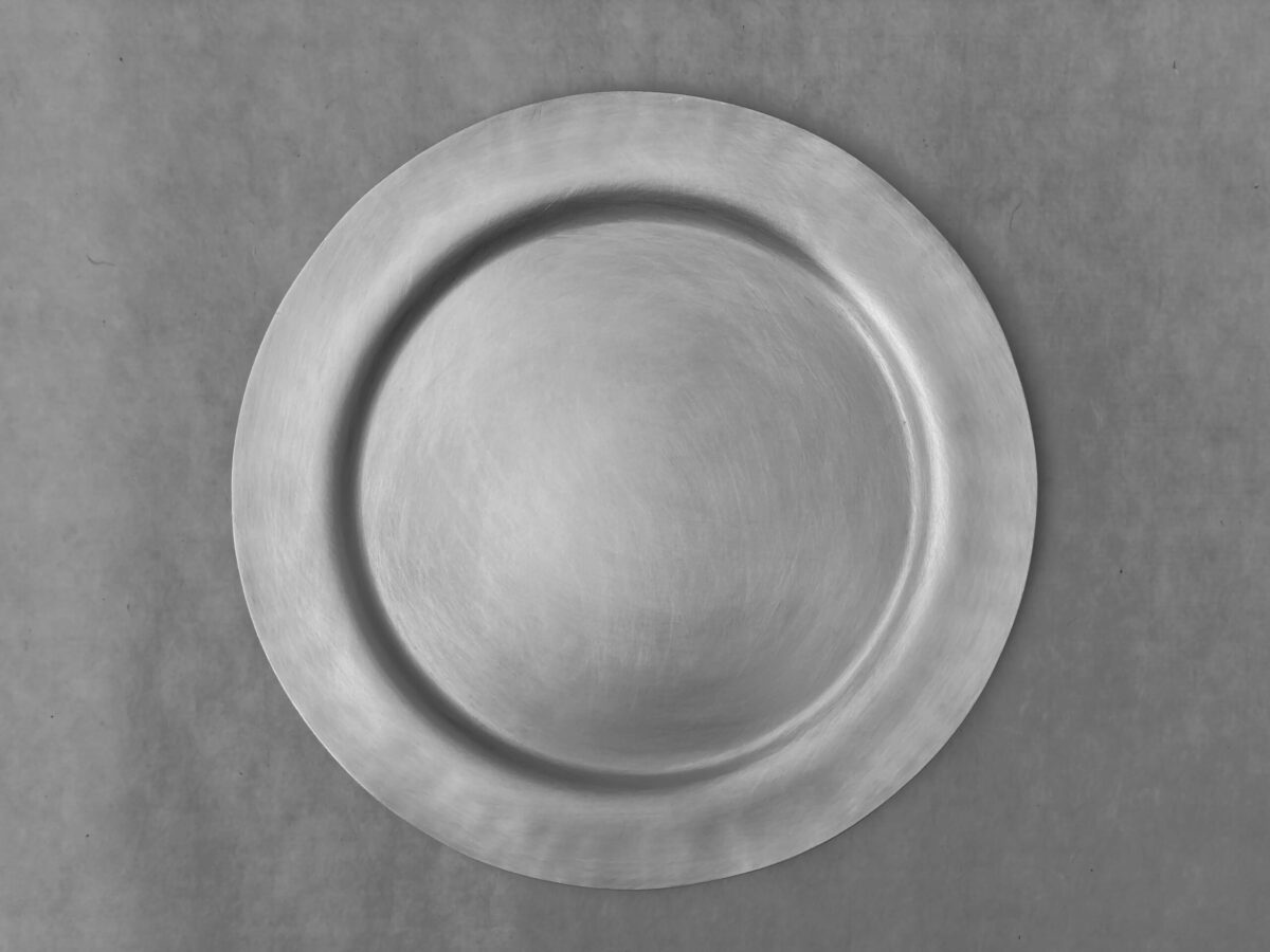 銀を鍍金して、独自の仕上げにより、マットで繊細な表情をした銀の平皿です。