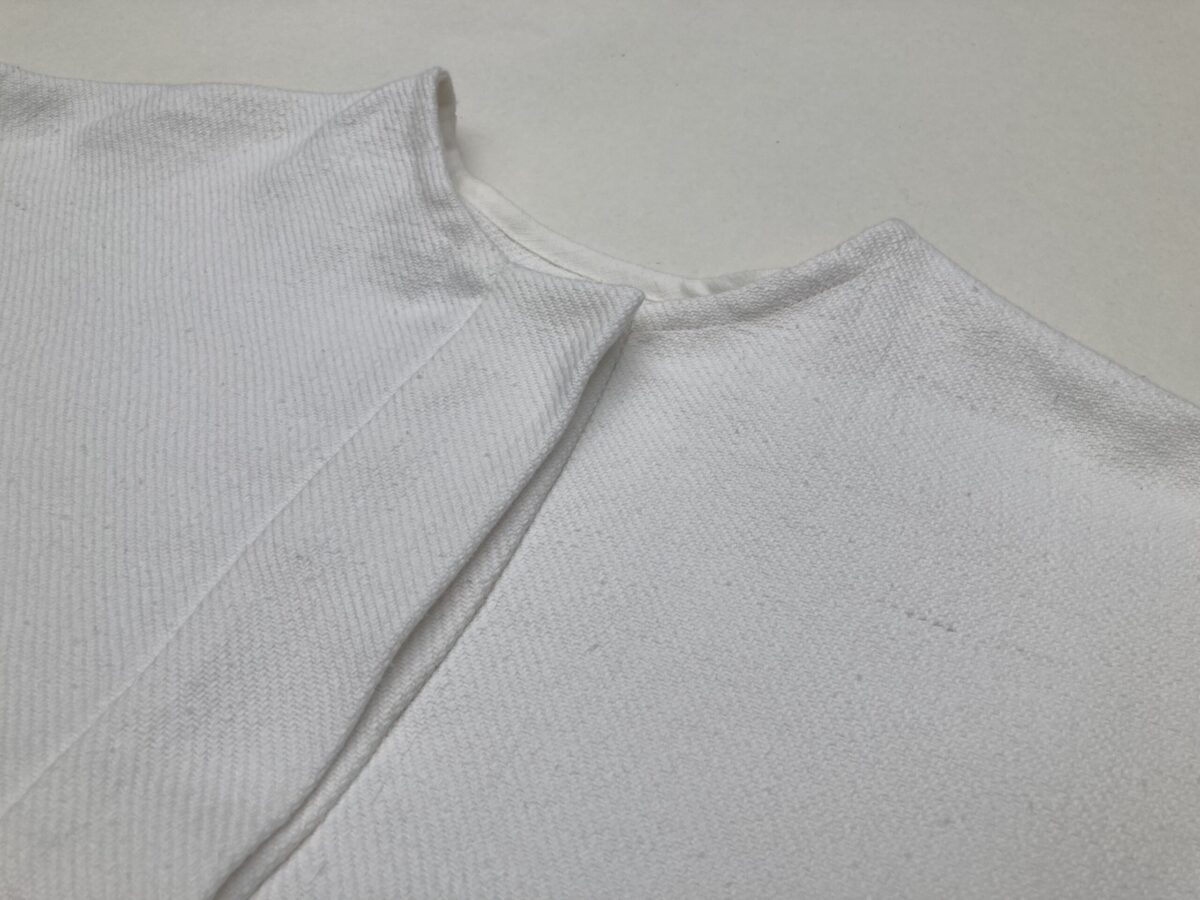 首周りはボタンもなく、布を重ね合わせただけの意匠です。